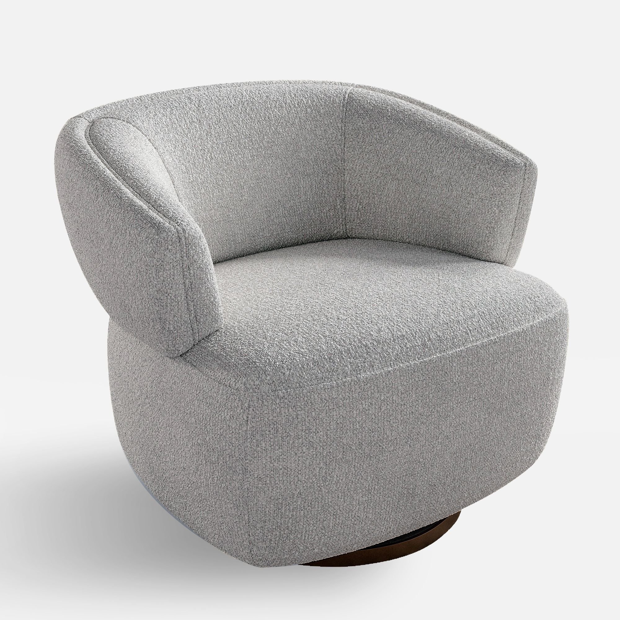 wivel Barrel Chair, Fully Assembled Accent Lounge Sofa with 360-Degree Base, Oversized Upholstered Reading Chair-Gray