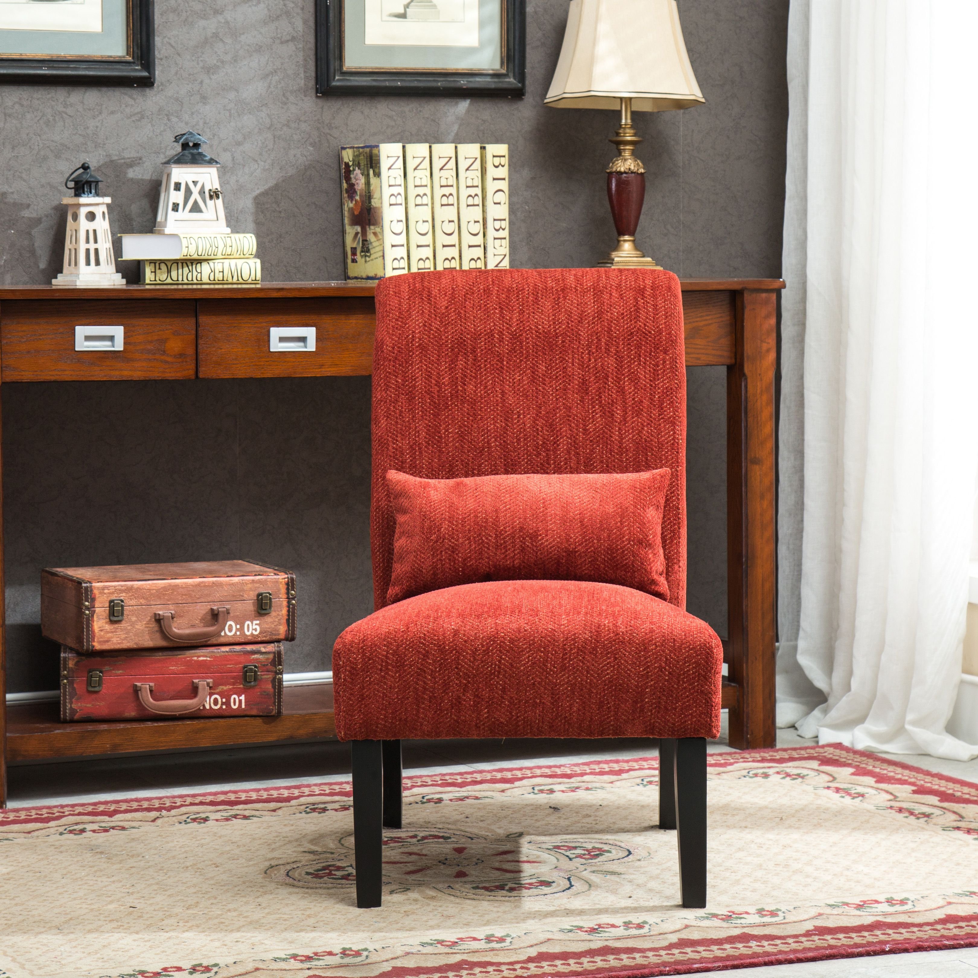Pisano Contemporary Chenille Fabric Armless Accent Chair with Pillow, Red