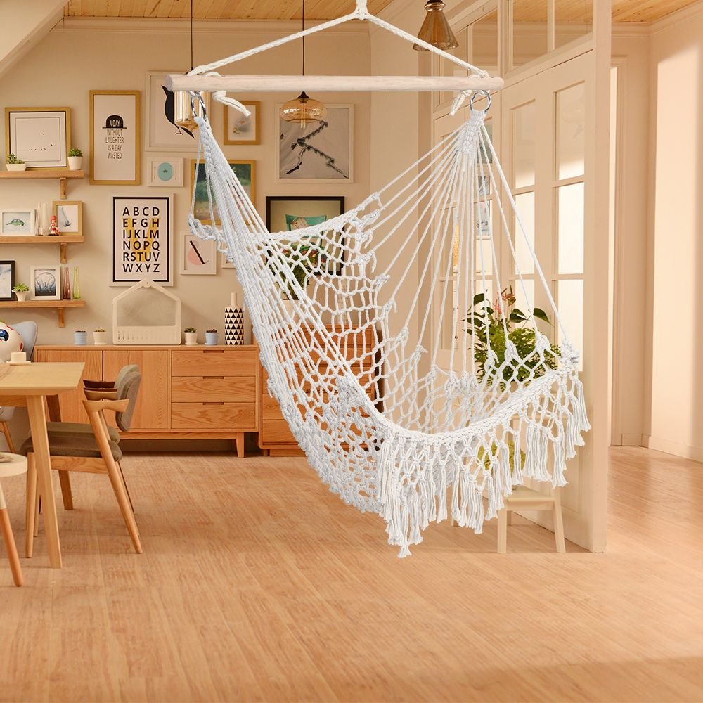 When going camping, people will take a tent, because it is one of indispensible accessories. In the tent, people could not feel the nearest nature, because it isolates them from annoying insects as well as nature. But to our delight, the Rope Sling With Tassel can solve the problem of tent. The air chair's two ends could perfectly be hung on branches, over the earth a quite distance. You can enjoy charming sunshine in the comfortable air chair, stretching your body at full length and feeling free from gravity. That is totally a different feeling from bed at home. What's more, made up with high quality lightweight material, the air chair is easily to carry and store. Such a perfect cotton rope sling , why not have a try?