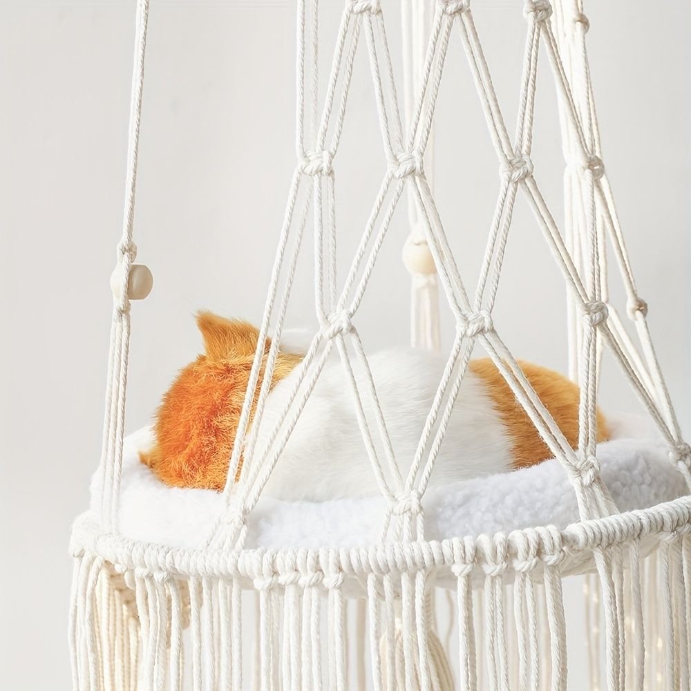 Home > 1pc Hand-Woven Cat Nest Hammock Basket - Comfortable and Stylish Wall Hanging Pet Bed for Small Dogs and Cats