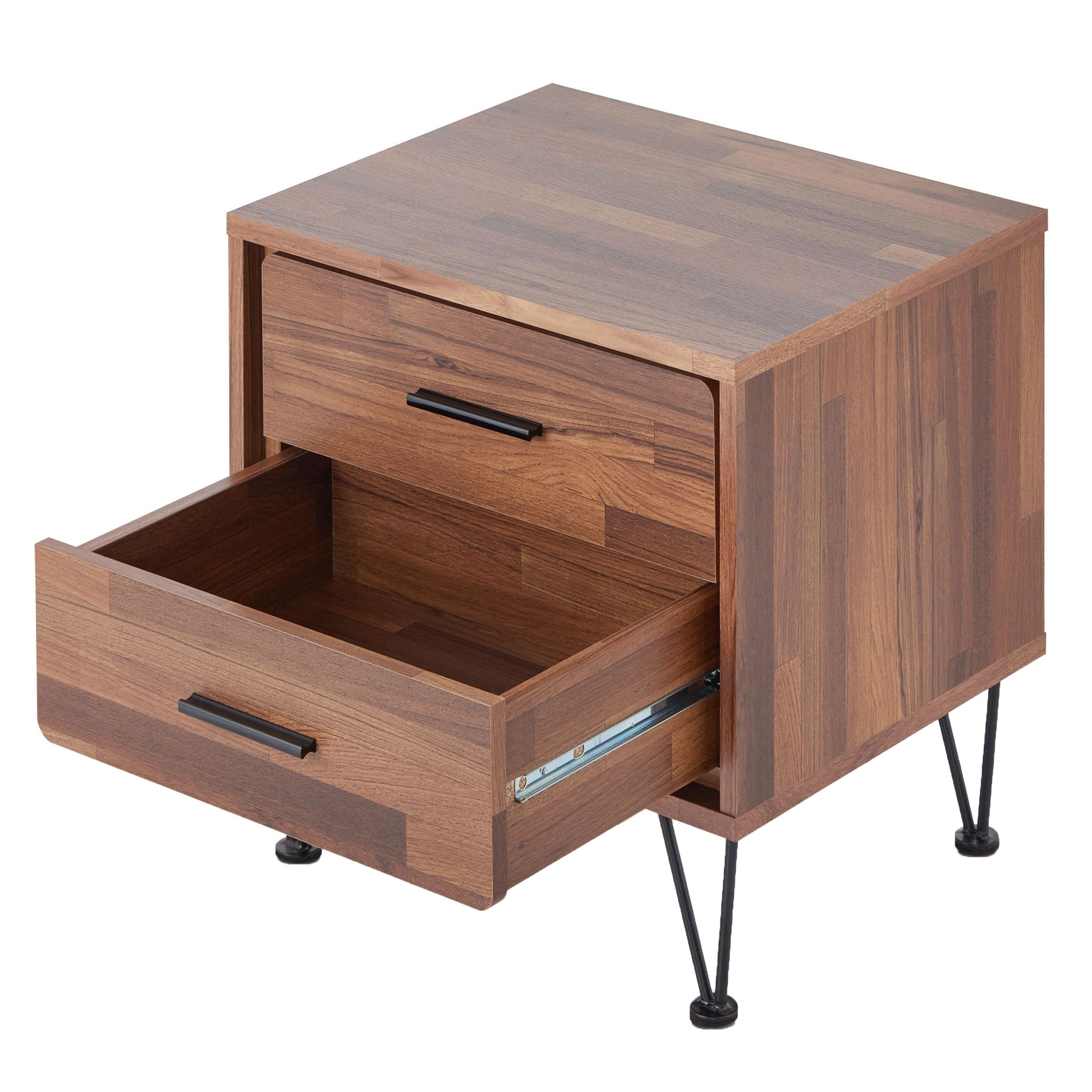 Walnut 2-Drawer Accent Table with Hairpin Legs